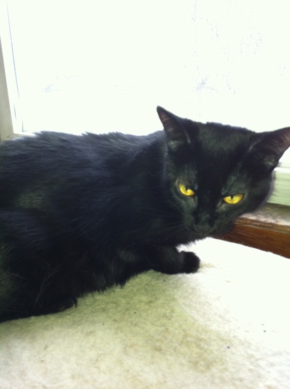 Ebony will soon be getting her "welcome-to-the-vet" appointment. What we know is that Ebony is FIV/FeLV negative, diabetic, and cranky/bitey. The shelter records say that Ebony is 5YO.